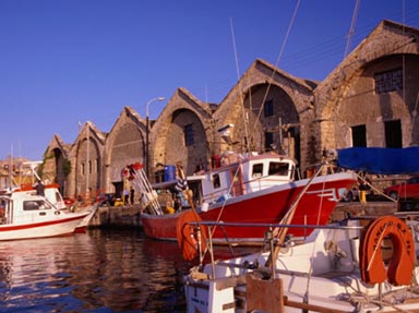 The Venetians constructed naval dockyards (arsenali) on both Crete and Corfu, which were primarily used for carrying out repairs to their fleet during the winter. The first two were completed in 1526 and were constructed to the south of the Inner Harbour, and a further fifteen were completed by 1599 (Crete finally fell to the Turks in 1699). A combination of disrepair during the Turkish occupation, and needless German bombing of the City of Hania in 1941, means that there are now only seven contiguous (inter linked) arsenali remaining, with two other docks at the eastern end of the Inner Harbour. The entrances, which are now blocked up, were of course once open to the harbour. A number of these structures are accessible, and are currently used as art galleries or for indoor concerts. They are worth visiting while you are in Hania, if for no other reason than to imagine the overall size of these Venetian timber galleons.